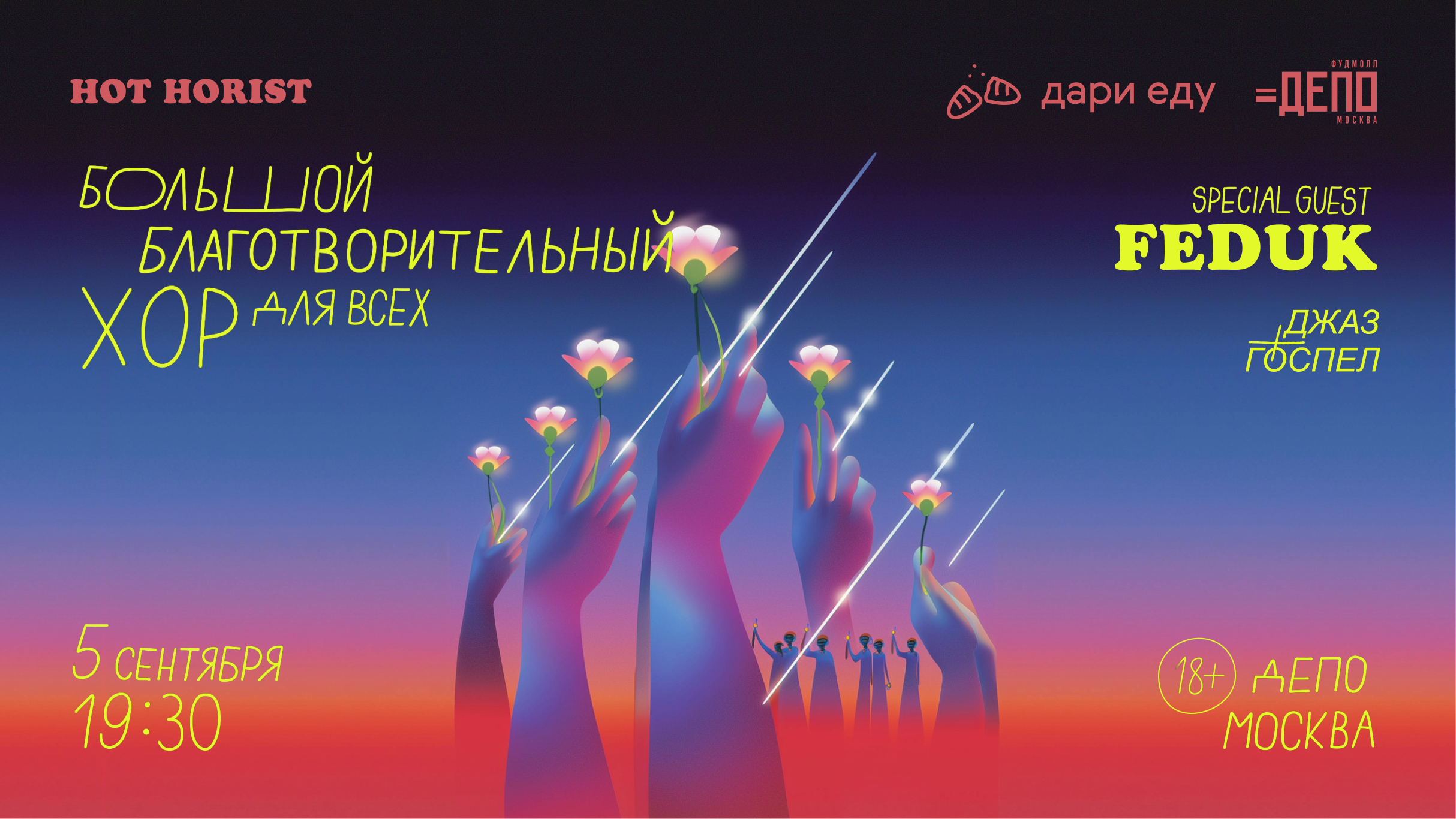 Собираем в честь Международного дня благотворительности Большой хор в ДЕПО МОСКВА, где мы совместим силу музыки с силой доброты, а классику госпела и джаза соединим в одном мэшапе с песнями FEDUK. А в финале споём вместе с ним!